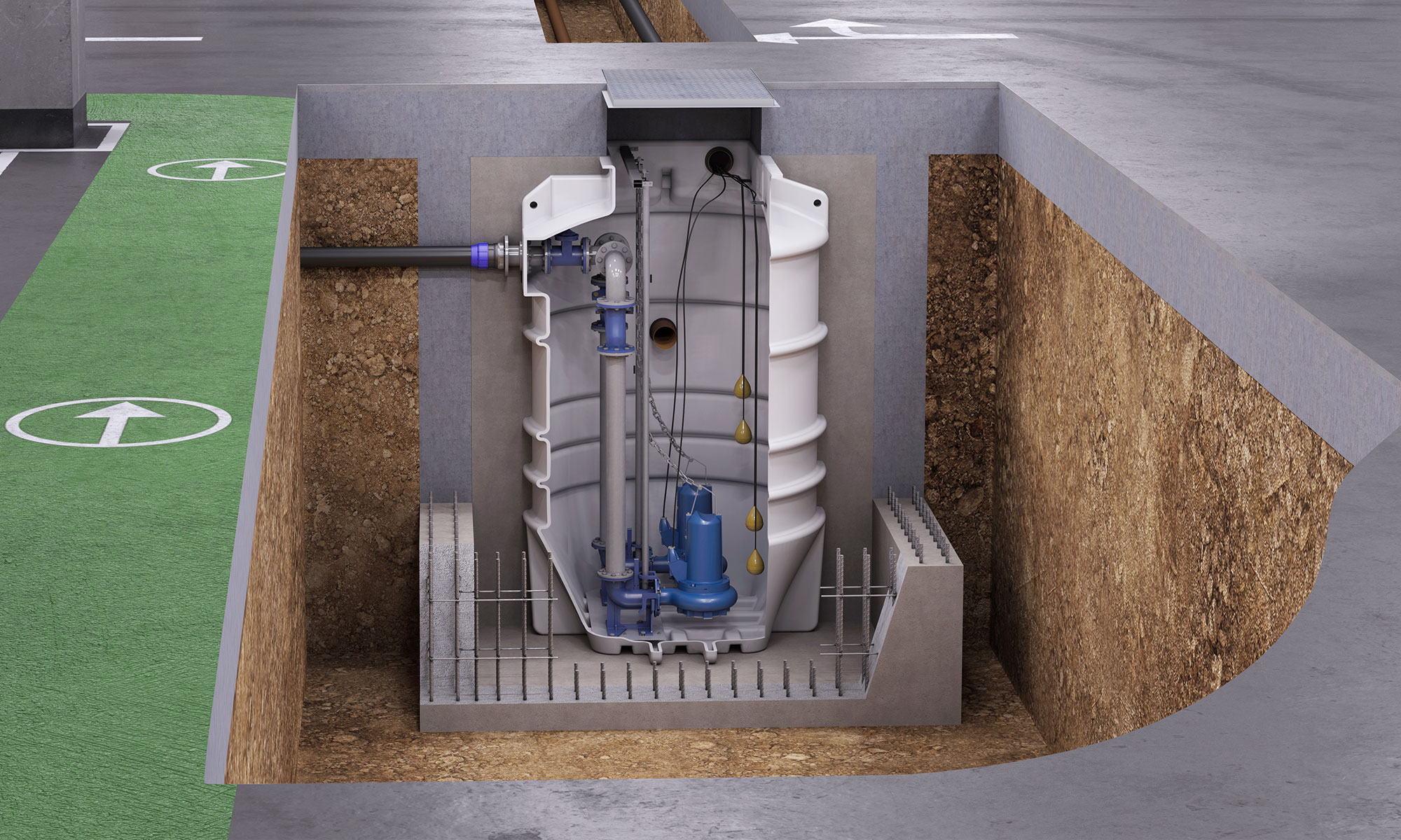 Water and sewage pumping stations + storage tanks