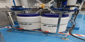 The chlorination package includes a chlorine injection pump (dosing pump), a polyethylene tank, a steel shaft with polyethylene coating, piping, a stainless steel frame, and an electrical panel, all of which together result in disinfected and bacteria-free water. It is important to note that the equipment of the chlorination package varies depending on the type and method of water disinfection, and the mentioned components are present in the liquid chlorination package.